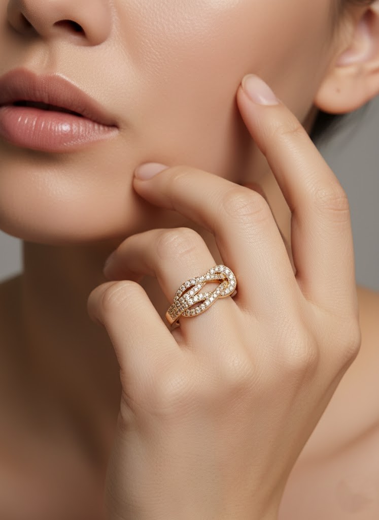 Be the first to review “Women’s Ring Elegant Knot Design Ring with Sparkling Crystals, Gold Tone”